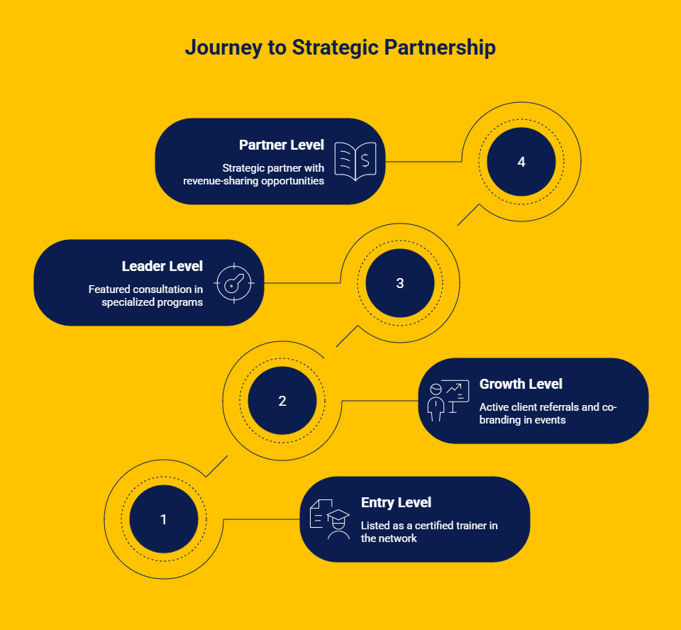 We provide pre-qualified clients, mentorship, and a clear 4-Level Career Success Path (4LCSP) so you can grow professionally while focusing on what you do best — training clients.